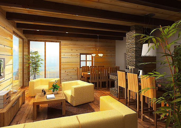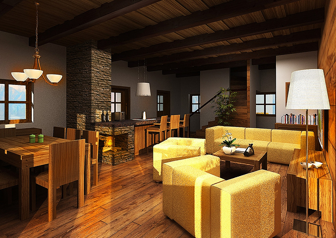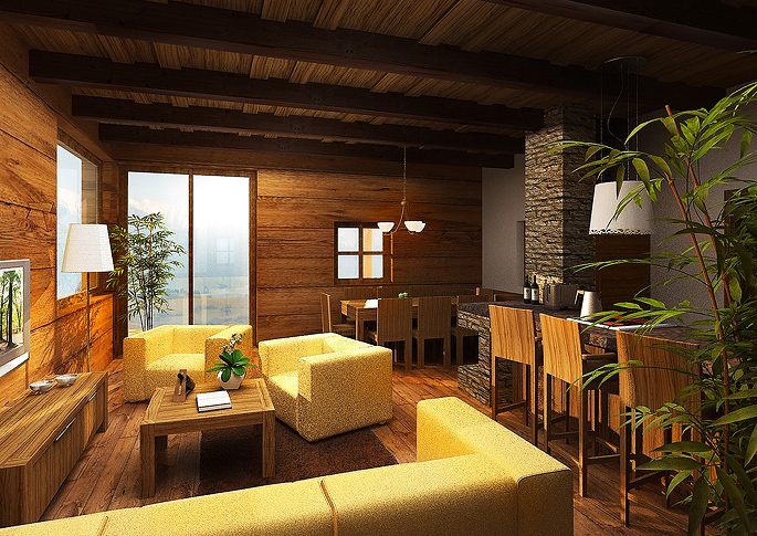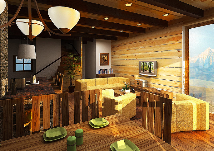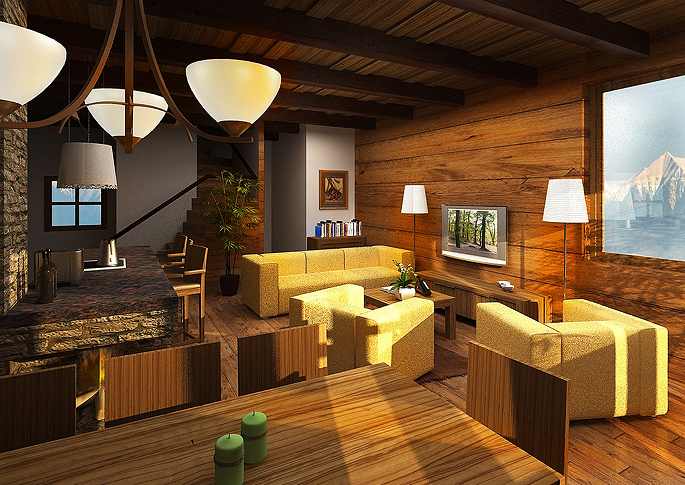 3D Visualization- Interior of a cabin, Slovakia