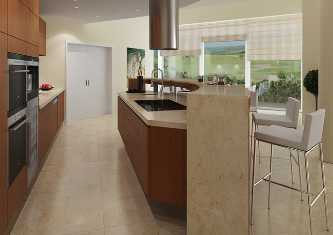 The bathroom interior is decorated in soft beige and sand tones, which create a calm and balanced atmosphere.