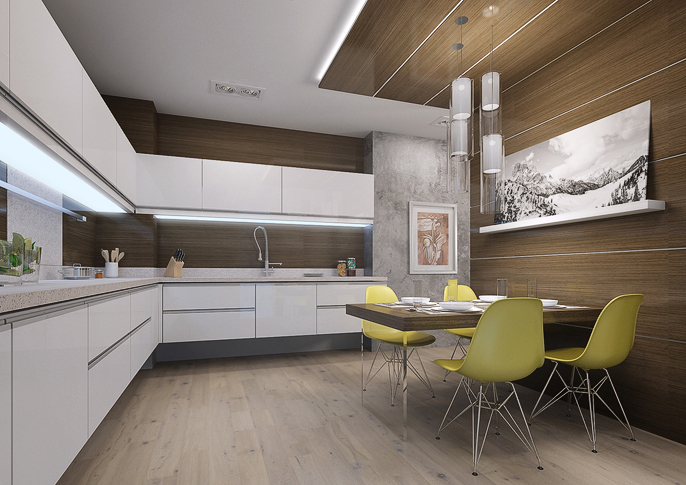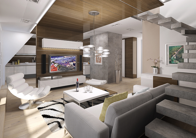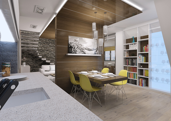 Minimalist interior design with wenge veneer and touch of Baroque