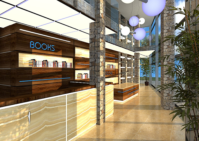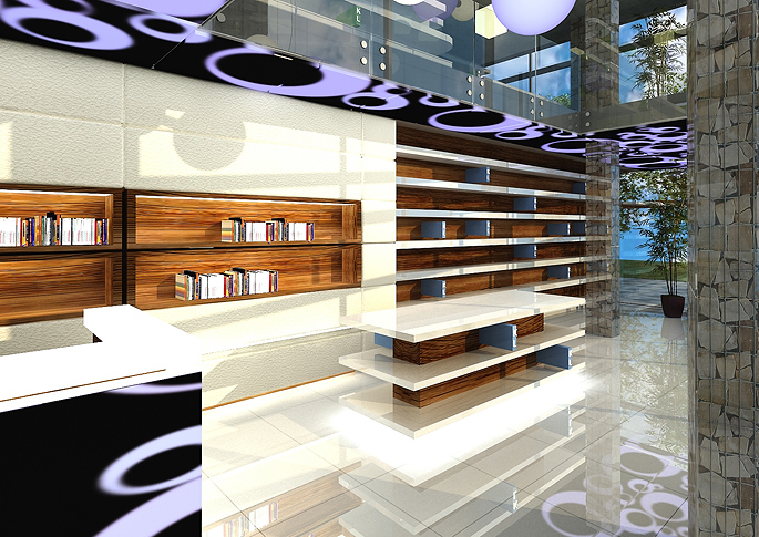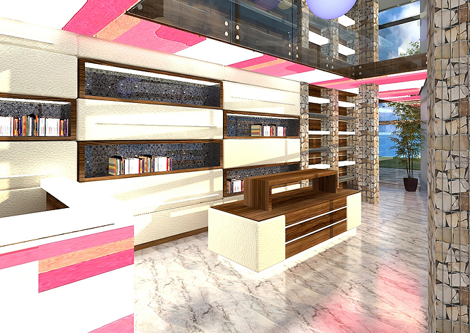 Interior design of a bookstore's sales counter in Ostrava