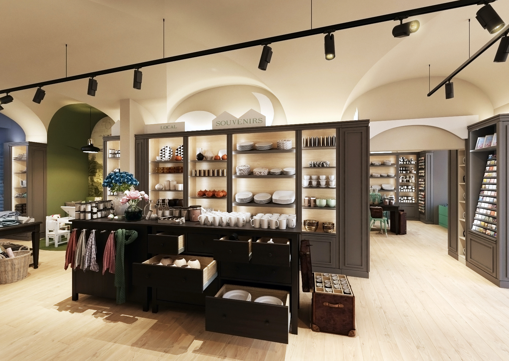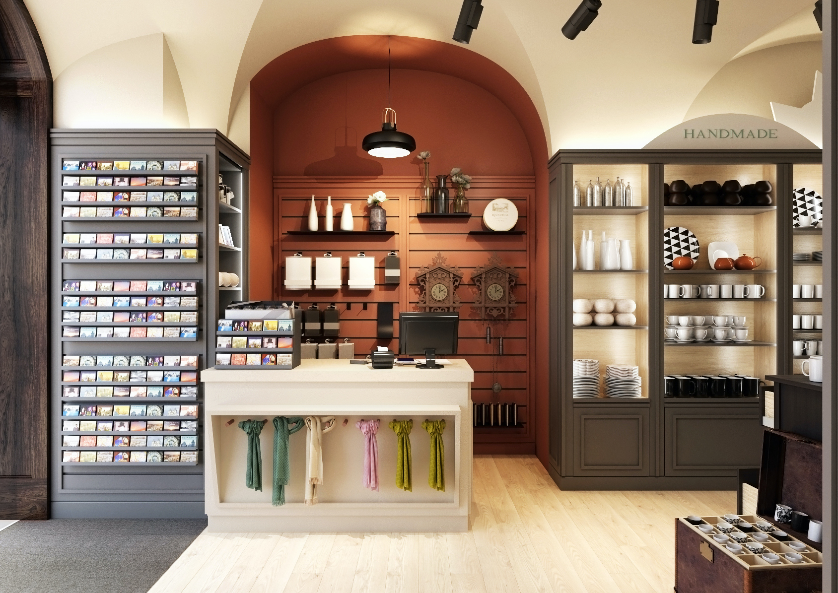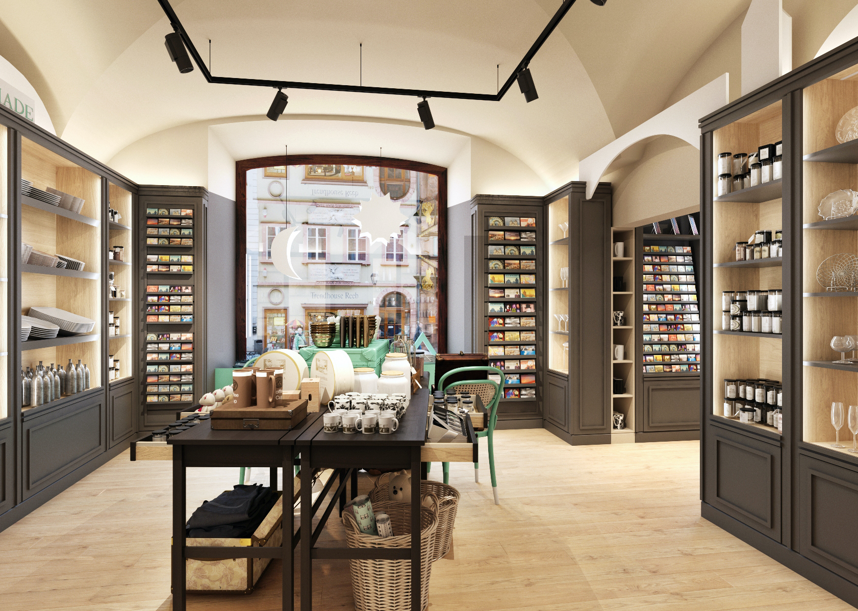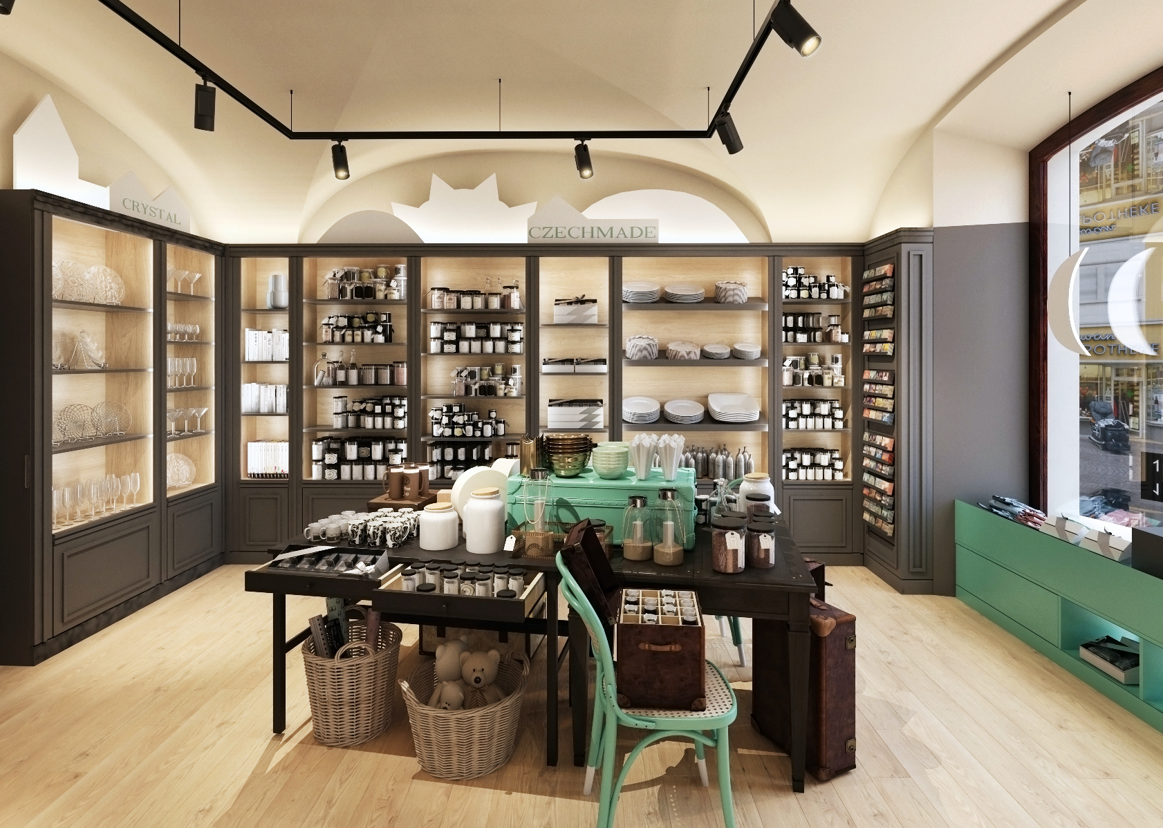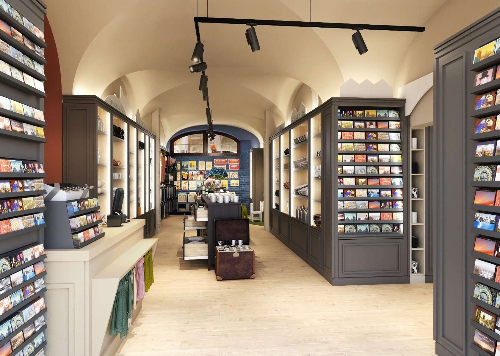 The souvenir shop is located in a historic building in Prague on Nerudova Street. A specific feature of these buildings are the vaults.