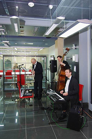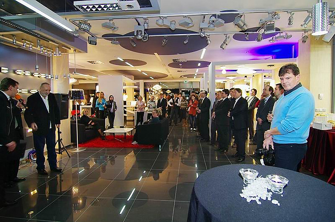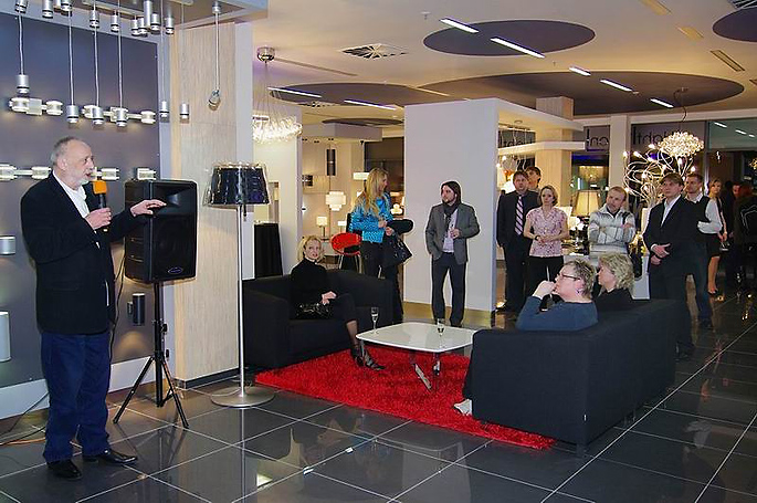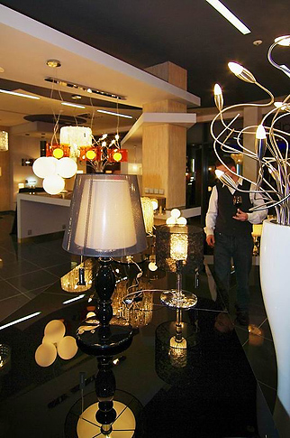 Interiér kanceláře působí reprezentativně a zároveň útulně díky kombinaci tmavých tónů dřeva, černých detailů a decentního osvětlení.