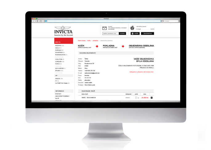Web presentation, Invicta e-shop graphic design