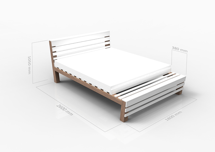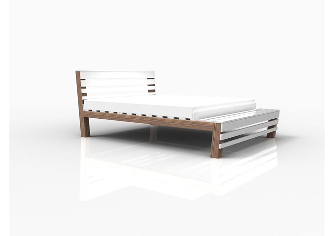 An original design of a bed inspired by classic outdoor furniture.