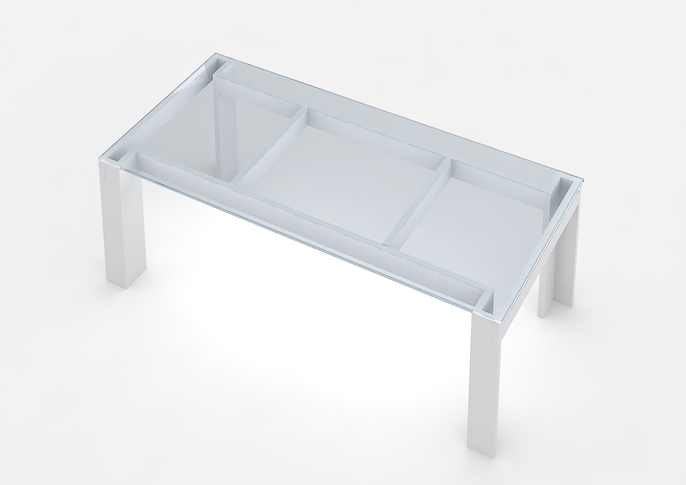 The popular dining table combined with solid wood/lacquered base and glass table top. Author of this design is Viktor Sinajský.