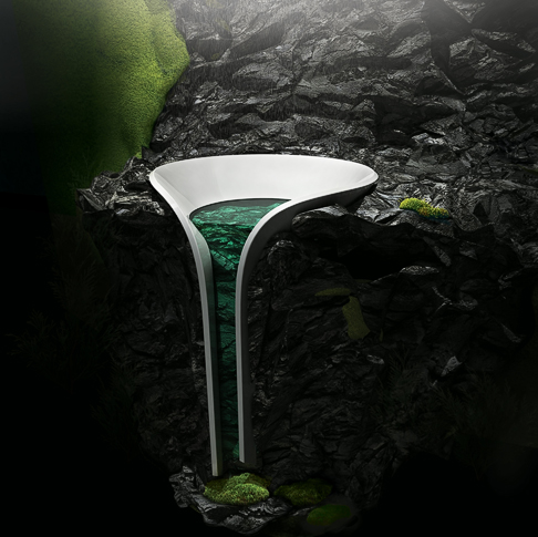 The design was created for Jika Laufen CZ on Expo 2015 theme. The concept of the "well" symbolizes the intimate atmosphere of hygiene and at the same time to represent the Czech Republic and its nature. The concept of Studánka is based on a washbasin with a variable radius, which is oriented towards a person. In the place of frequent contact of the hand with the ceramic, its shape is smooth without any edges or transitions. The drain is hidden under the kermaic element.