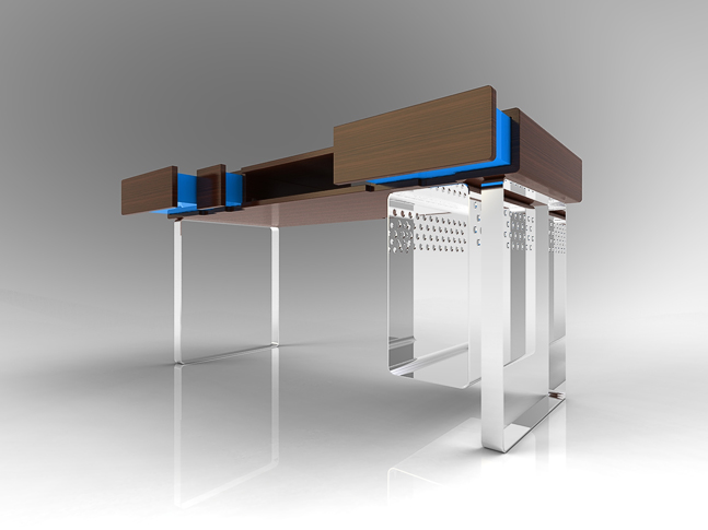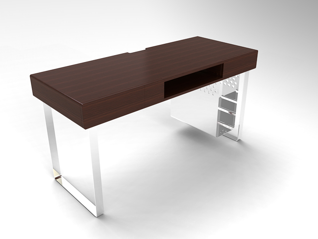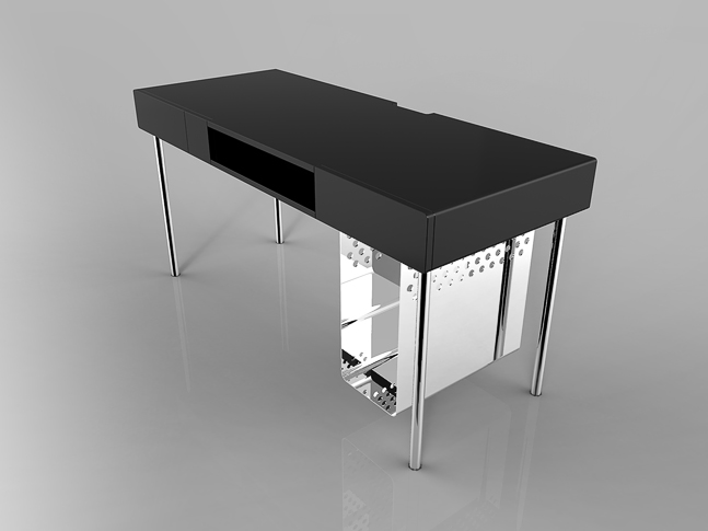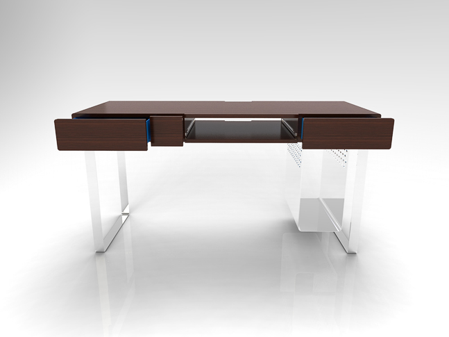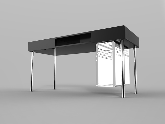 Office desk with removable bottom frame for storing a desktop computer and with practical drawers.