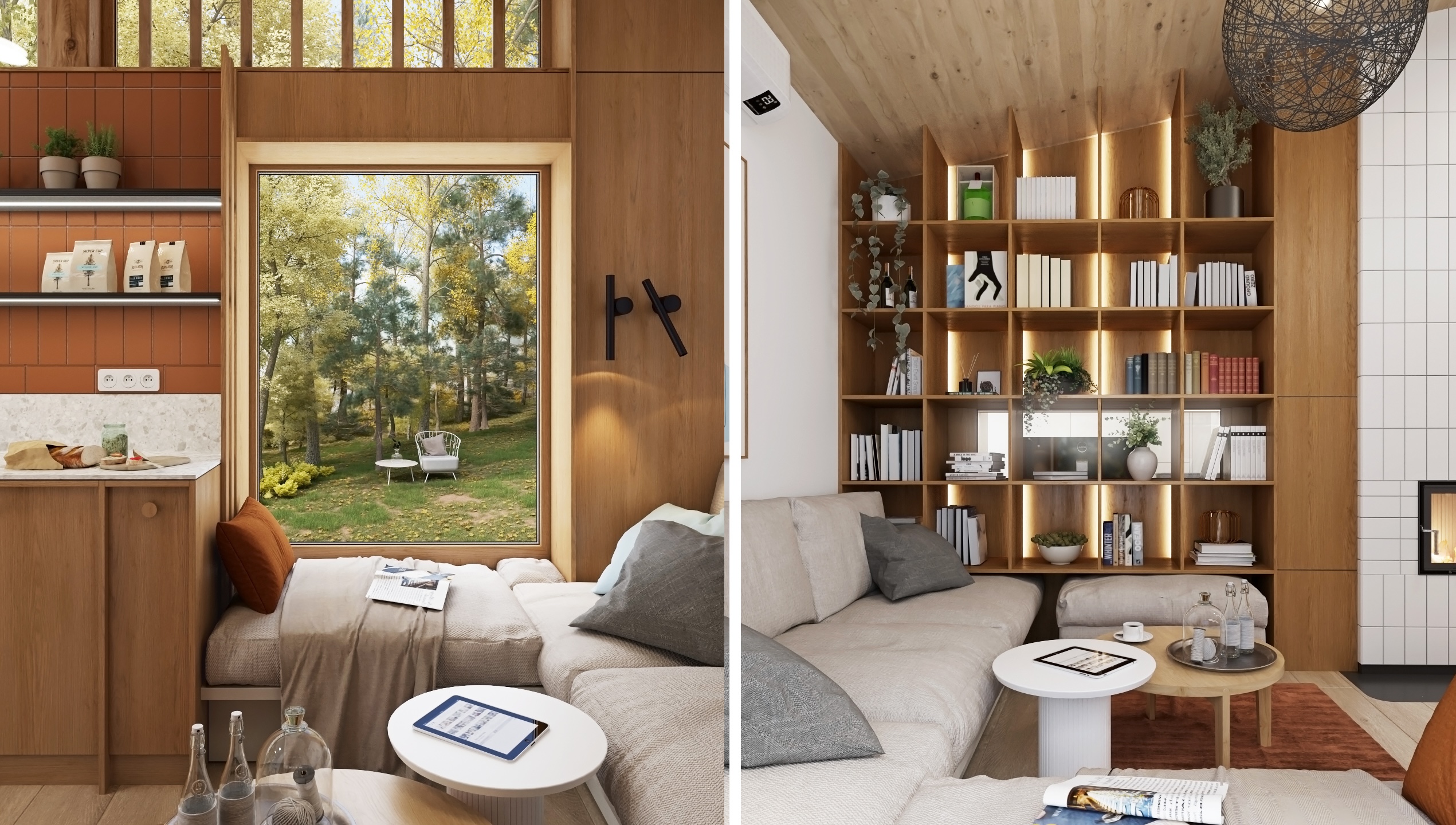 This small cottage in the middle of the forest offers a harmonious connection between the interior and nature.