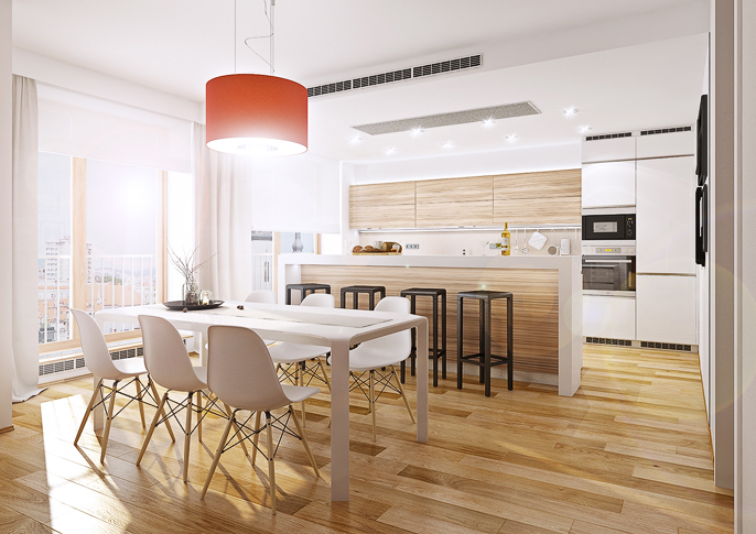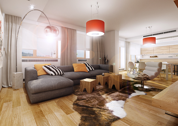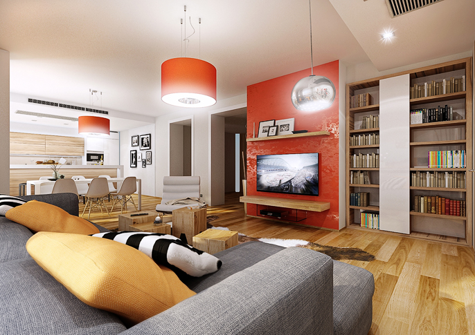 Luxurious apartment interior in combination with orange