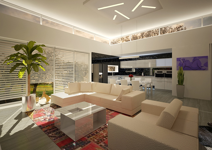 Design of a minimalist family house interior