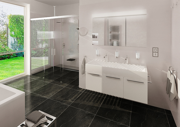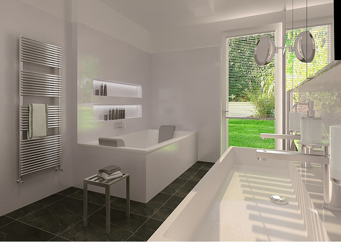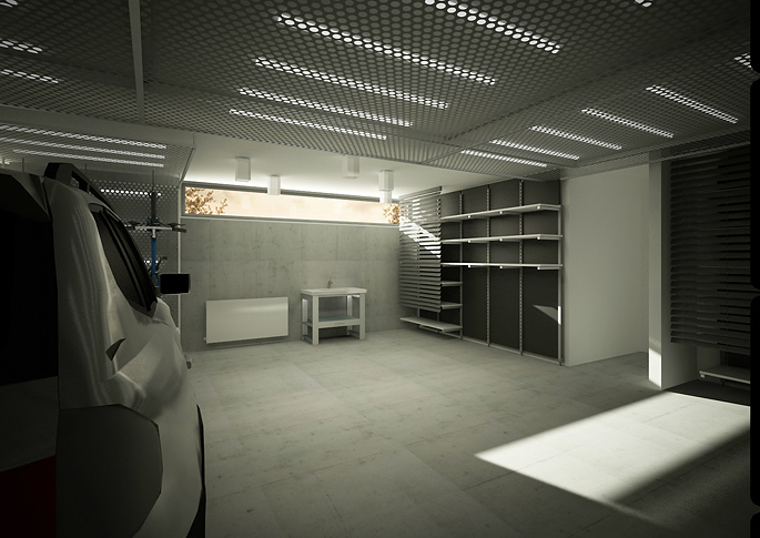 A neat solution, with a minimalist interior design of a family house, dominated by huge glass areas with a view of the landscape. Part of the assignment was the solution of all details, including the interior design of garages in an industrial spirit.