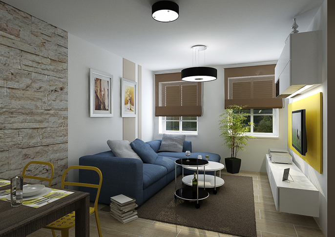 Reconstructed interior of the kitchen and the living room