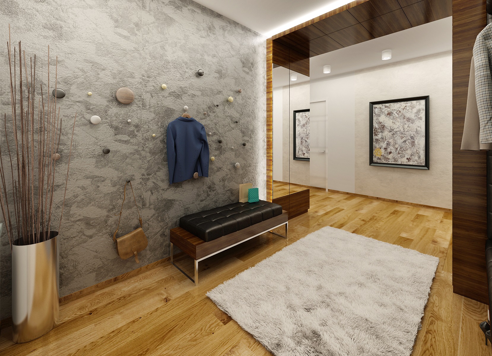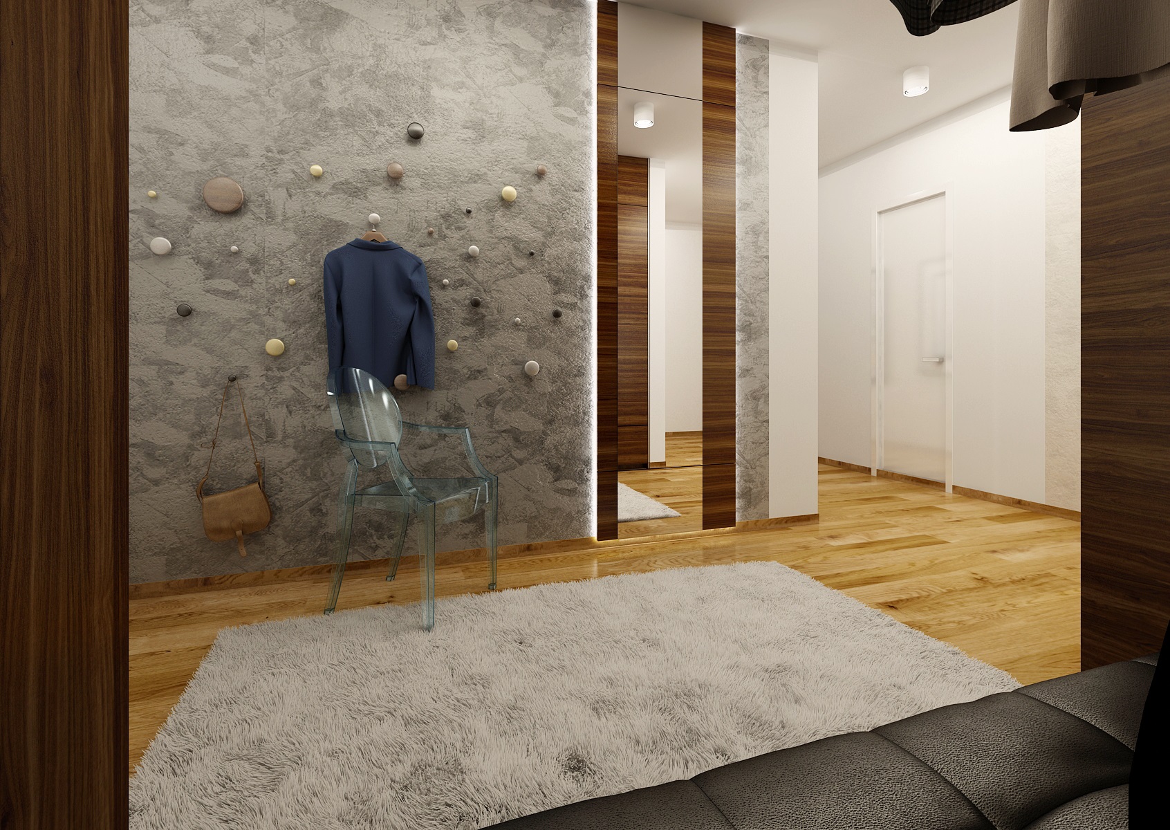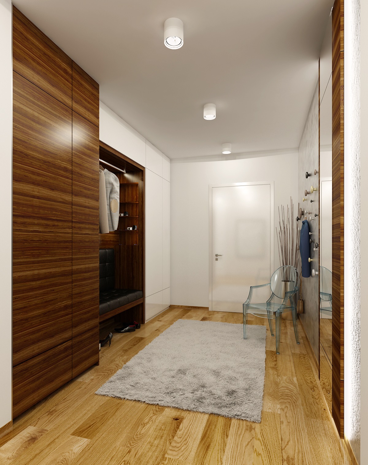 Interior design of a living room, hallway and children's room in a new Prague apartment