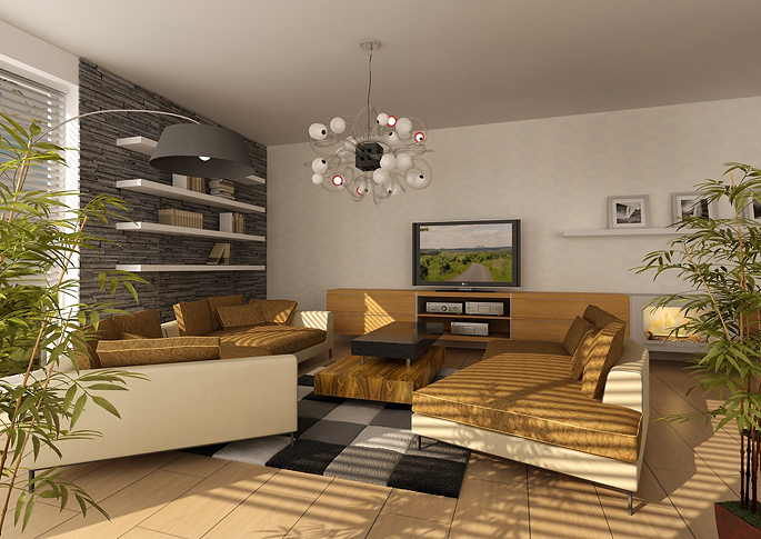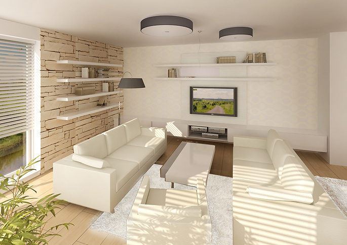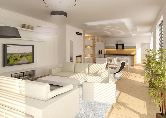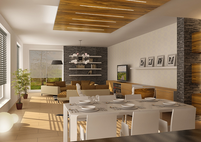 Interior design of a family house with natural materials