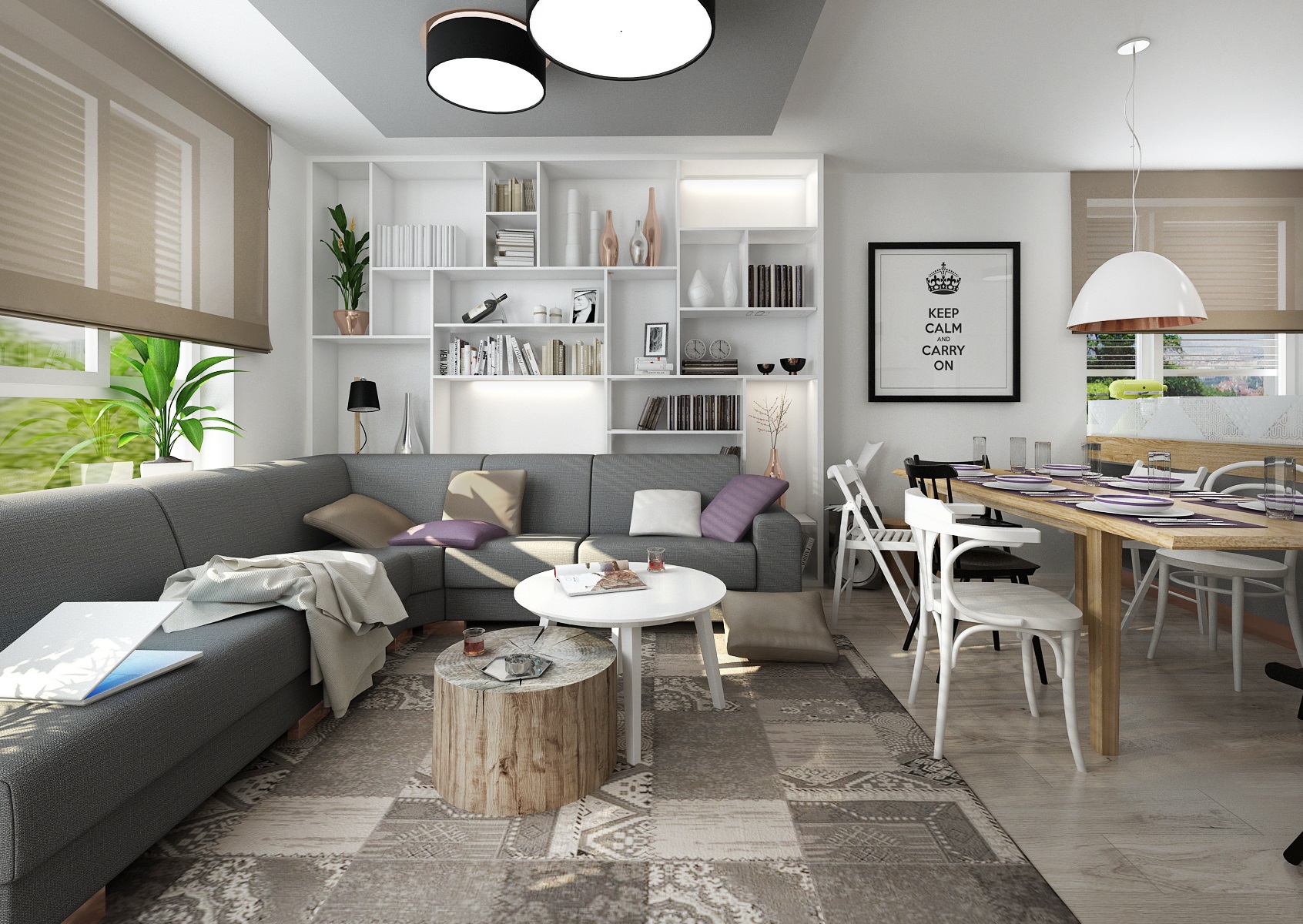 Living room with kitchenette in Retro style