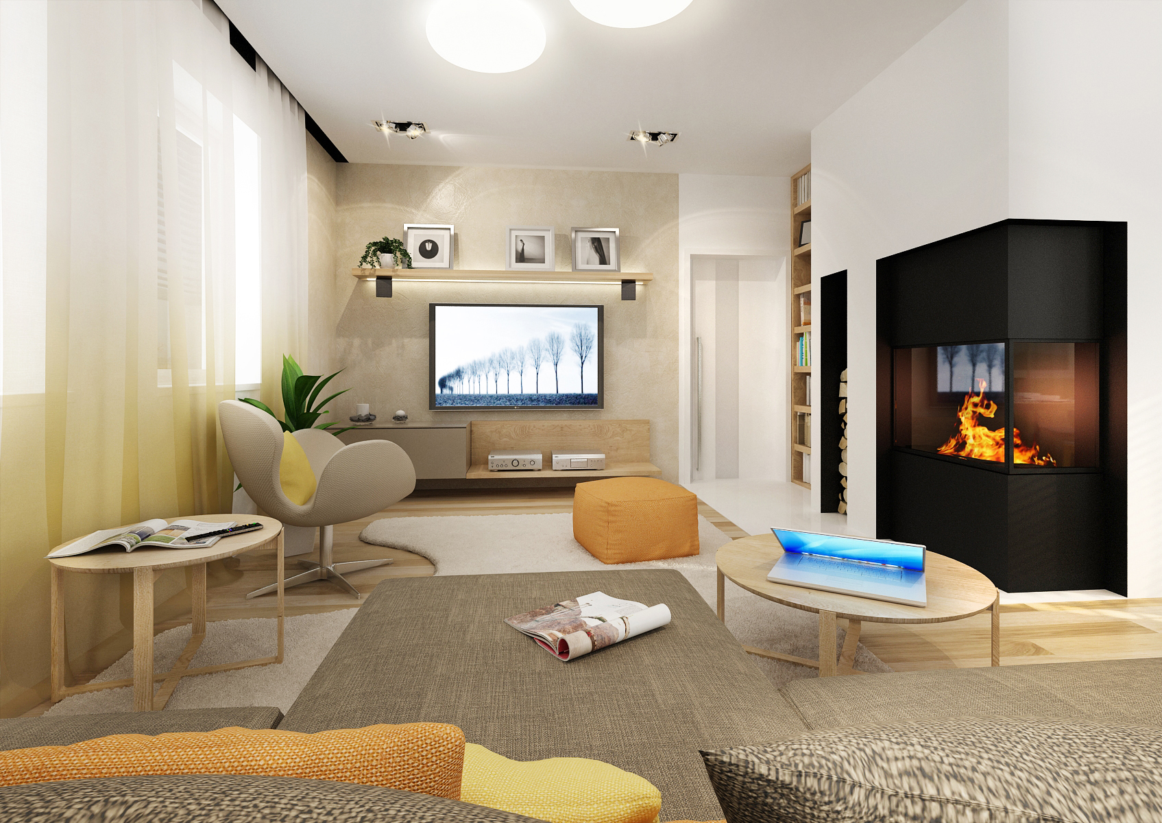 Beige interior design in a family house