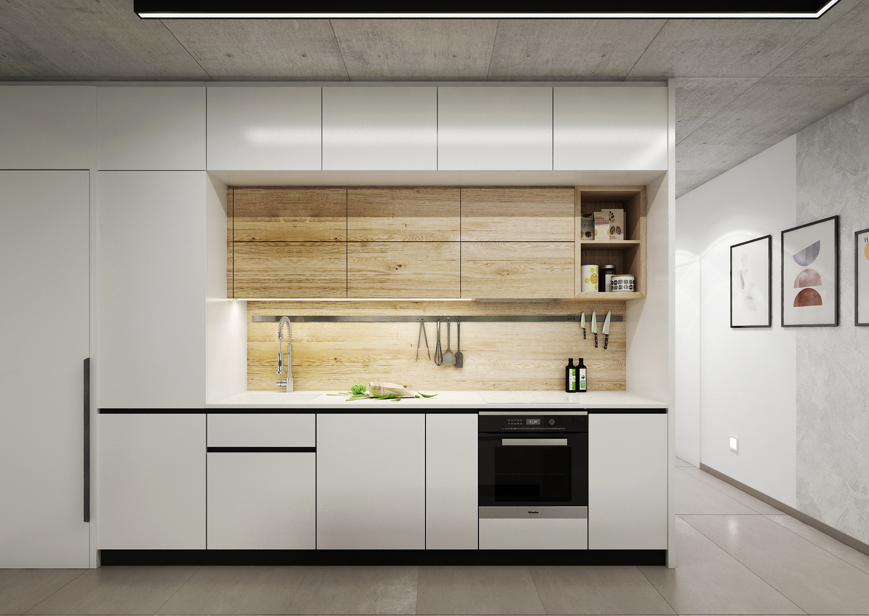 White kitchen with oak