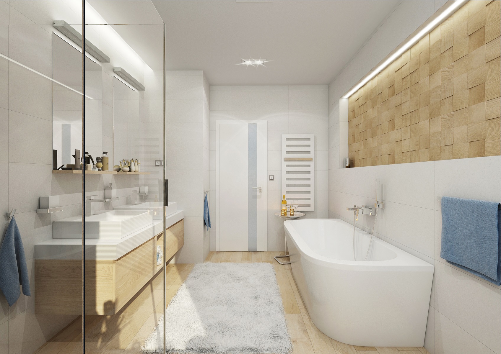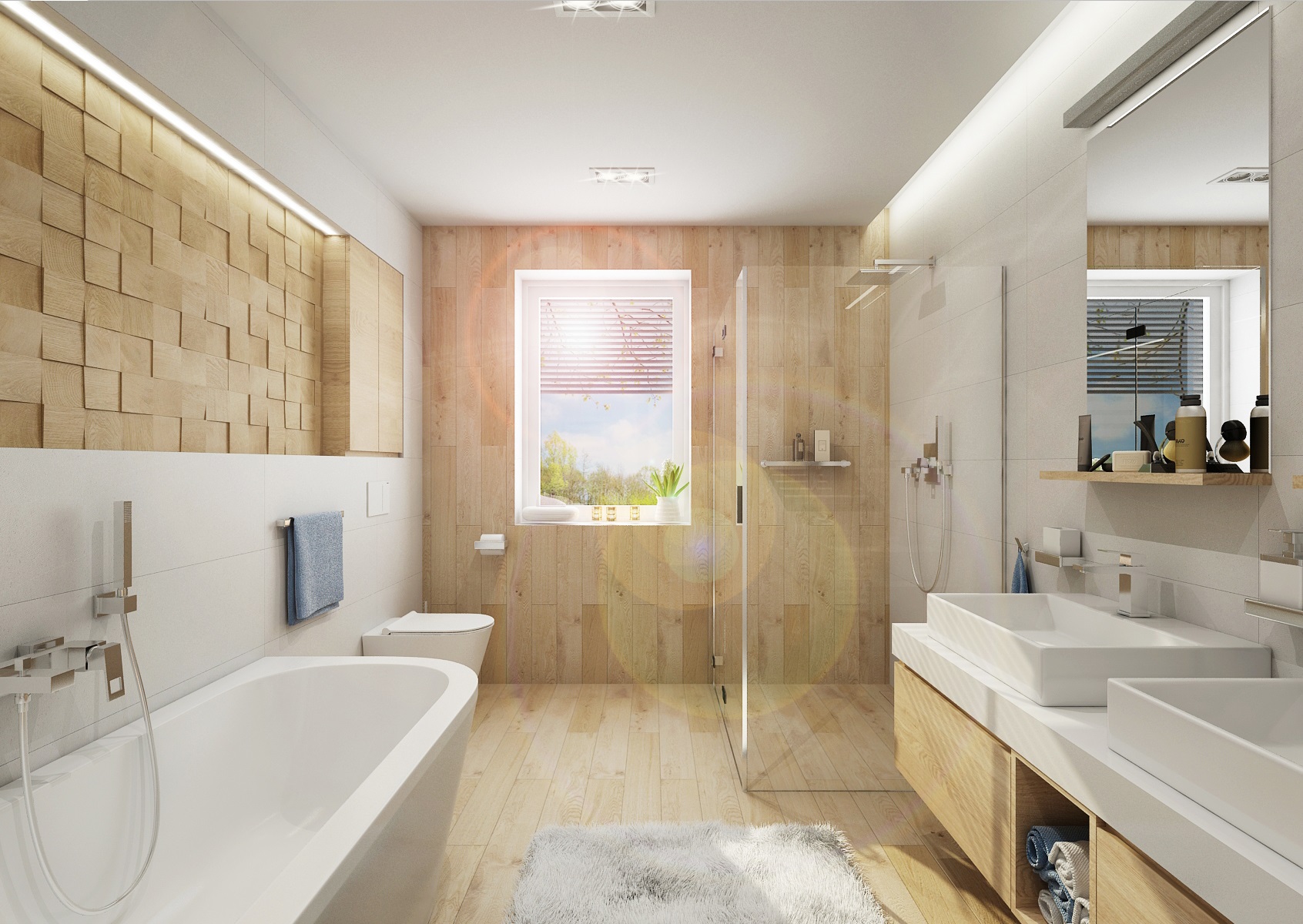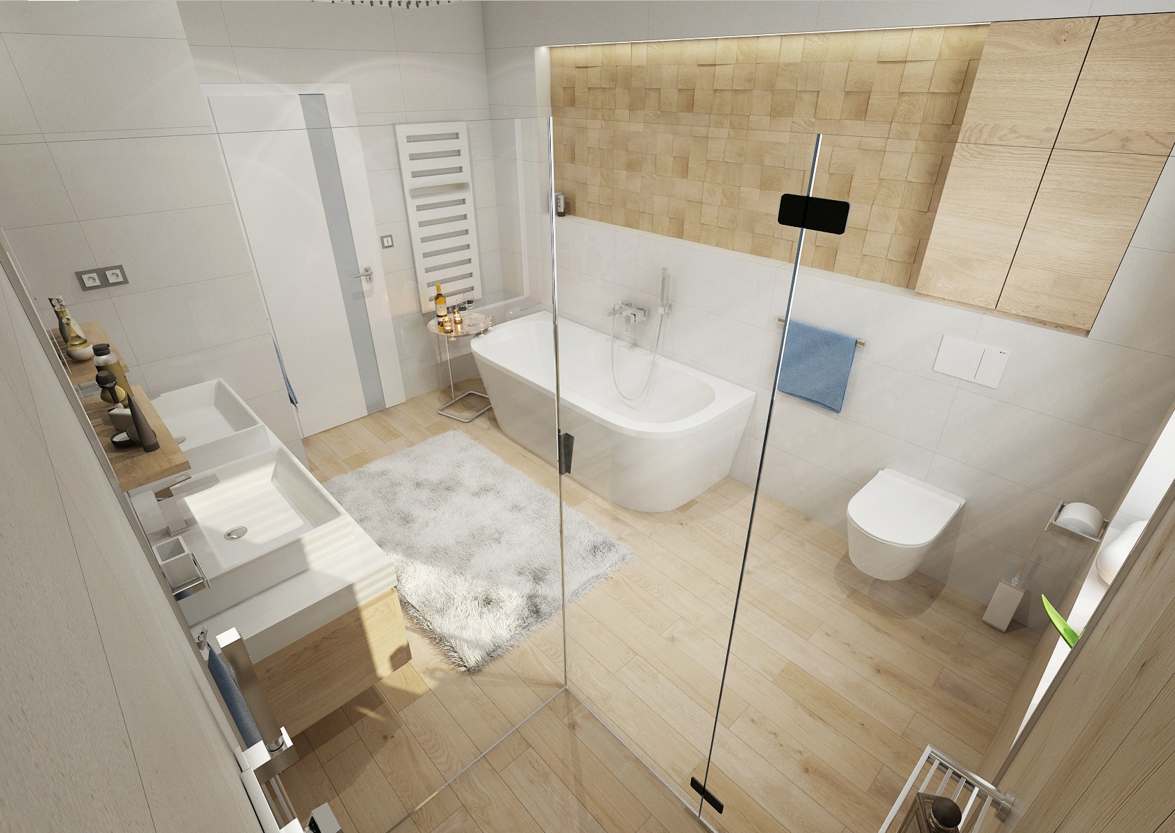 The bahroom is decorated with 3D mosaic - tiles from Porcelanosa ceramics.