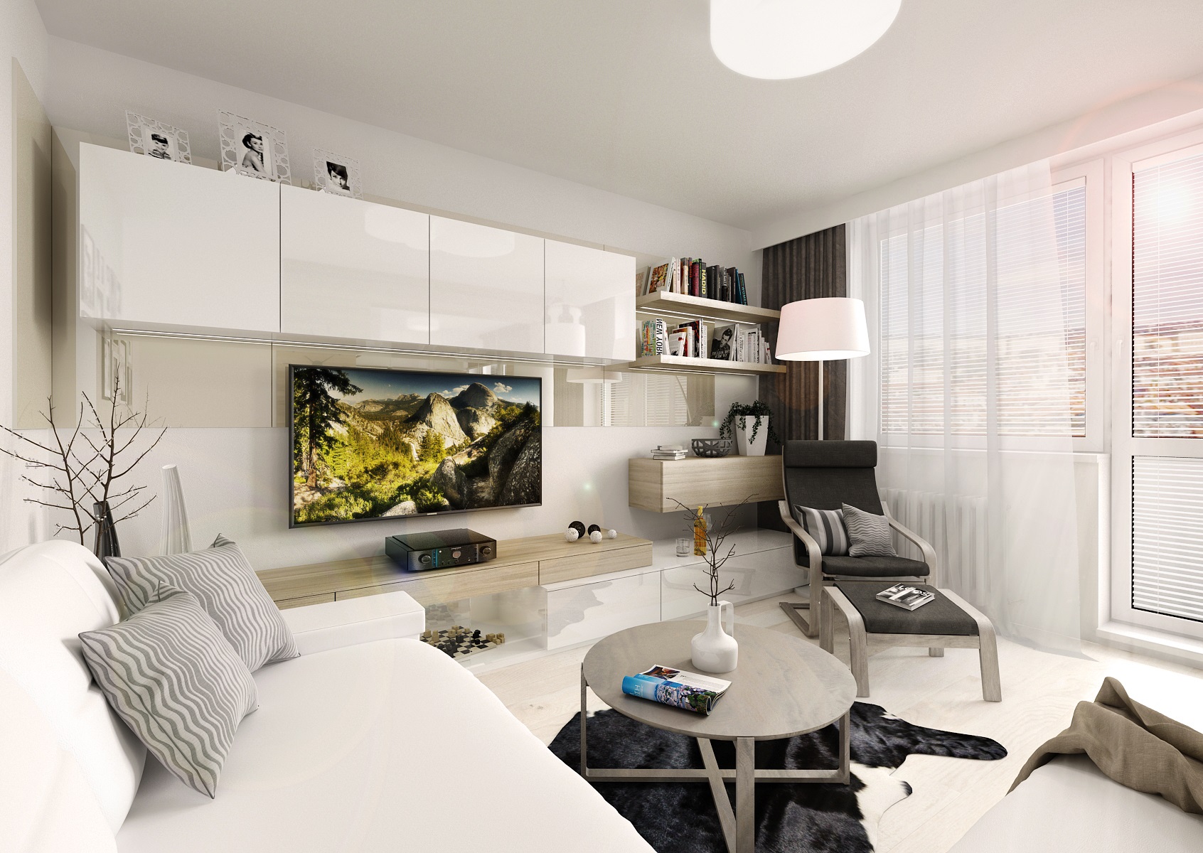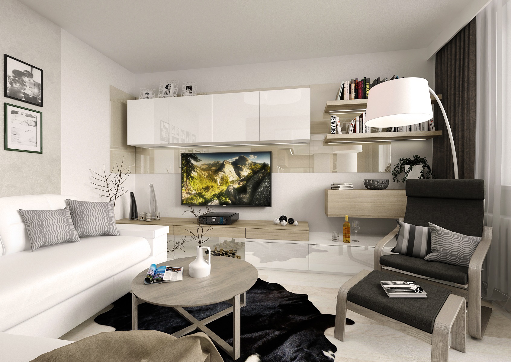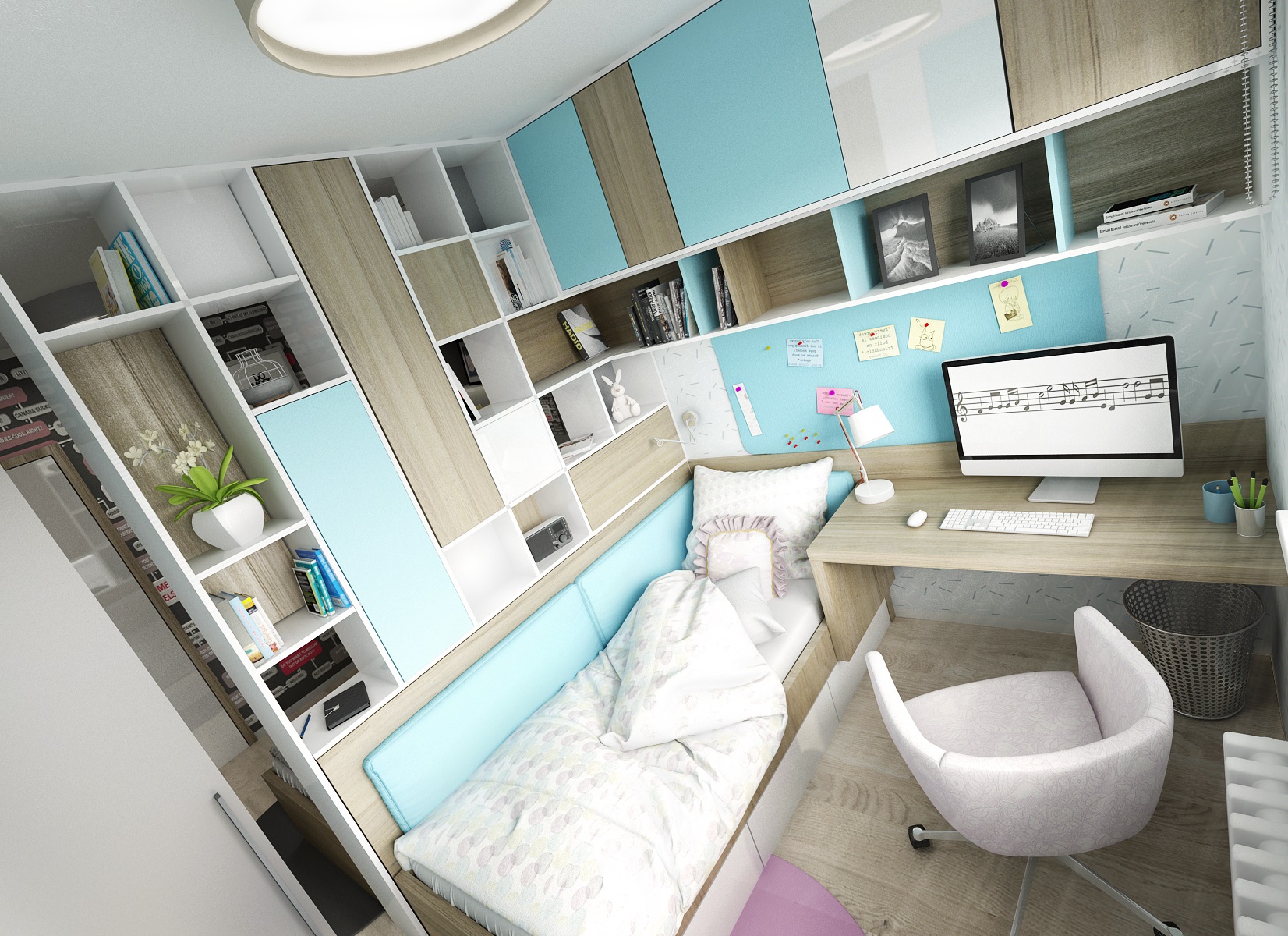 A complete reconstruction of a three-room apartment. An interesting feature is the space created for a home office on a glazzed loggia. In the living room, we managed to fit in a corner for exercise and divide the children's room so that the siblings each have their