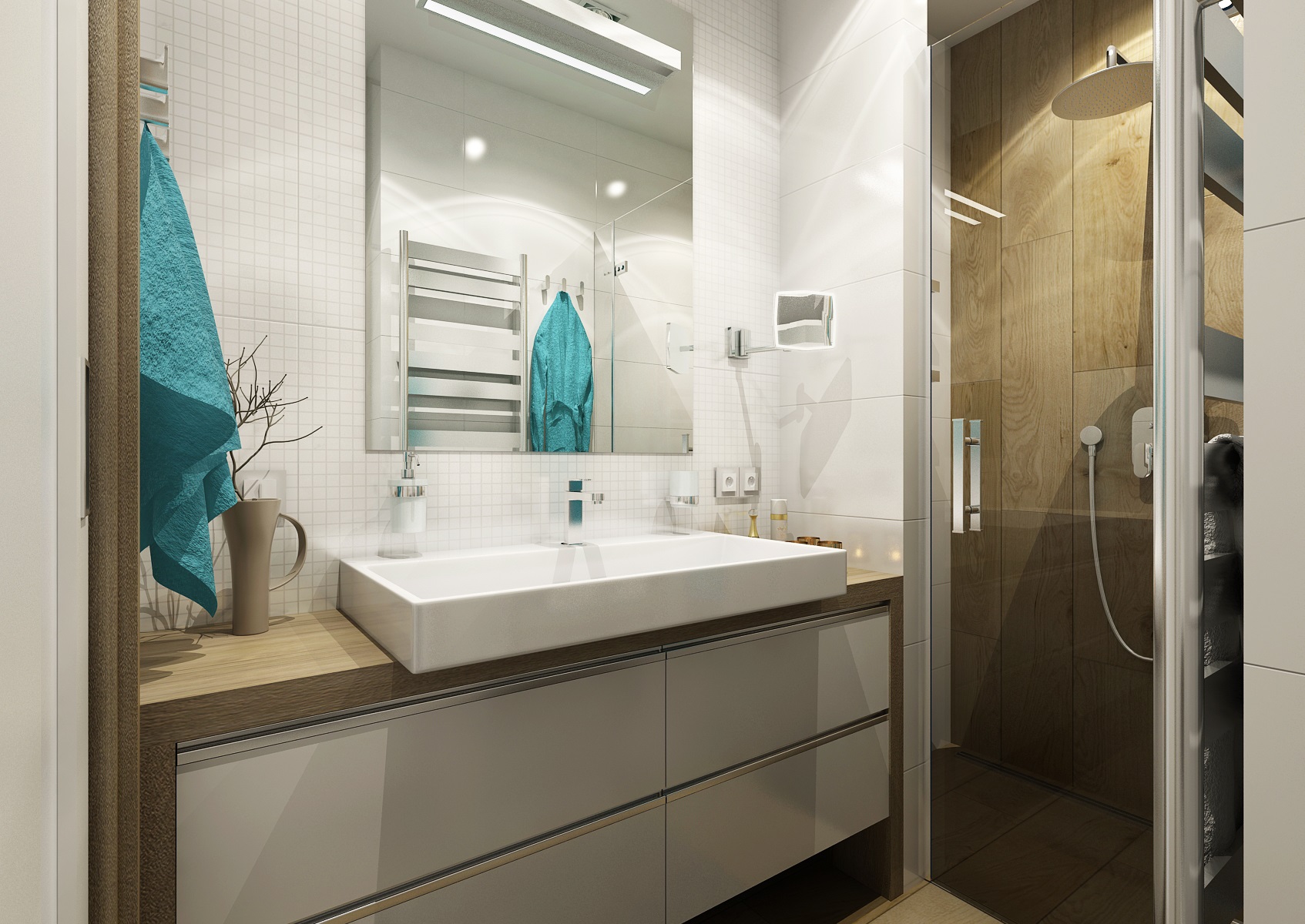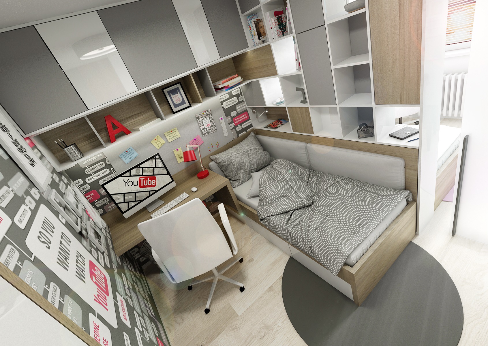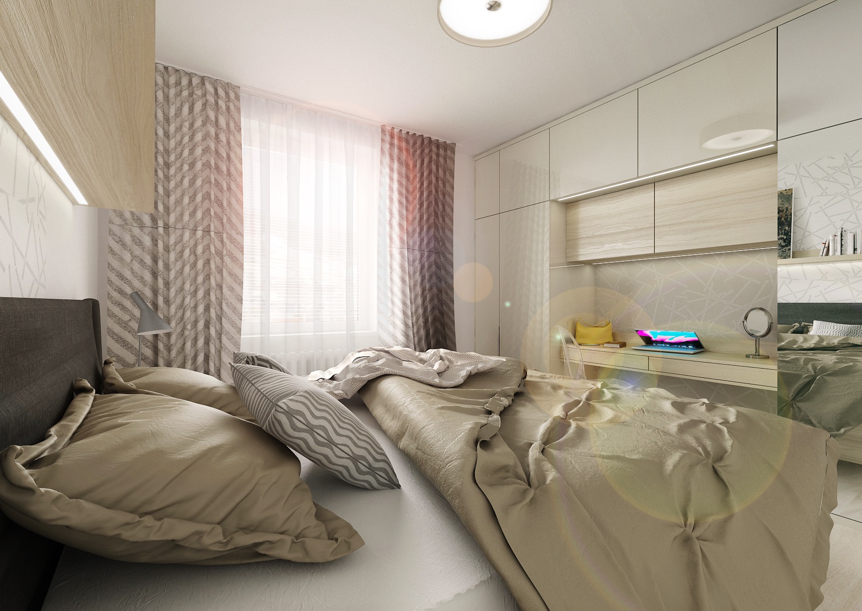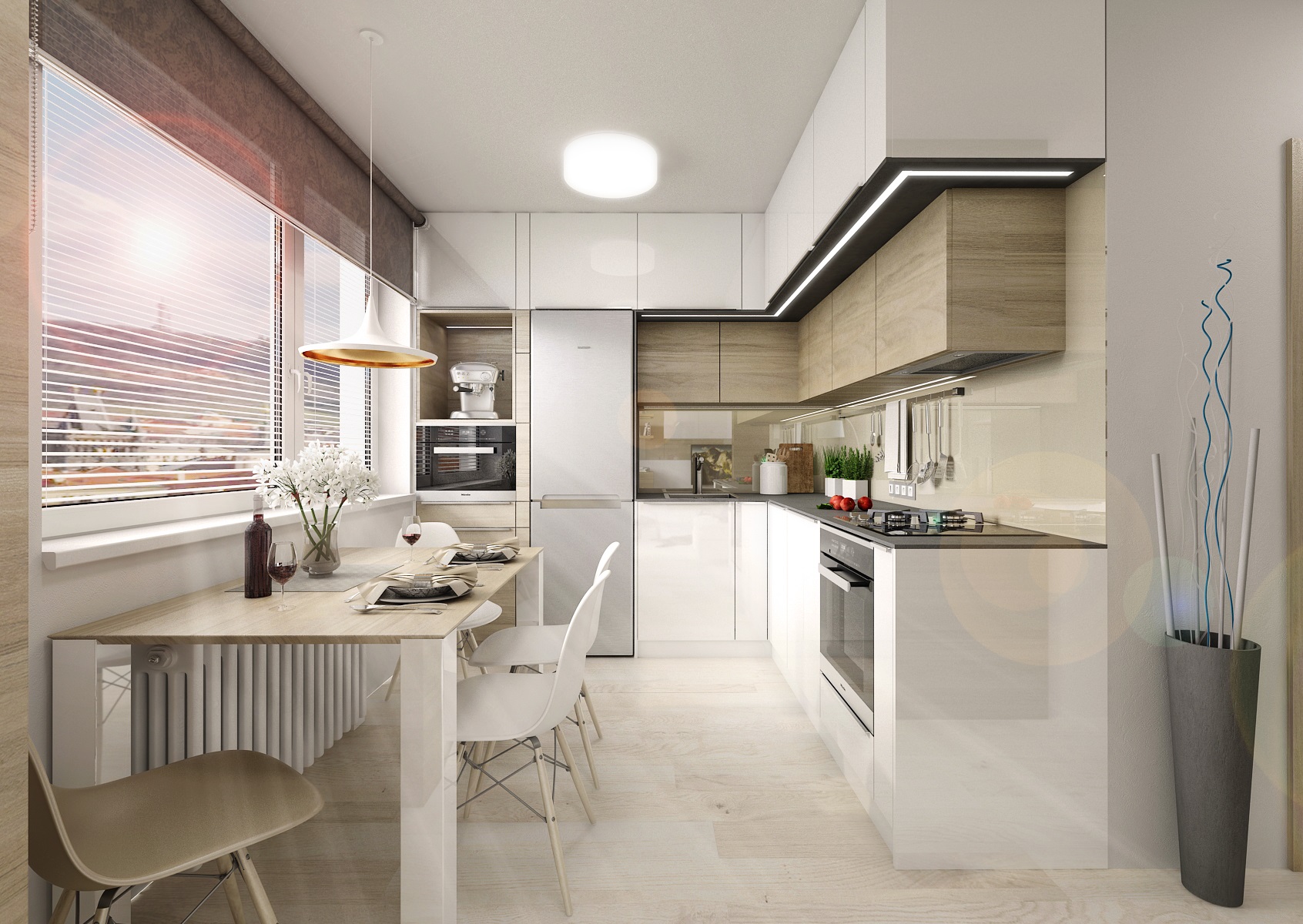 A complete reconstruction of a three-room apartment. An interesting feature is the space created for a home office on a glazzed loggia. In the living room, we managed to fit in a corner for exercise and divide the children's room so that the siblings each have their