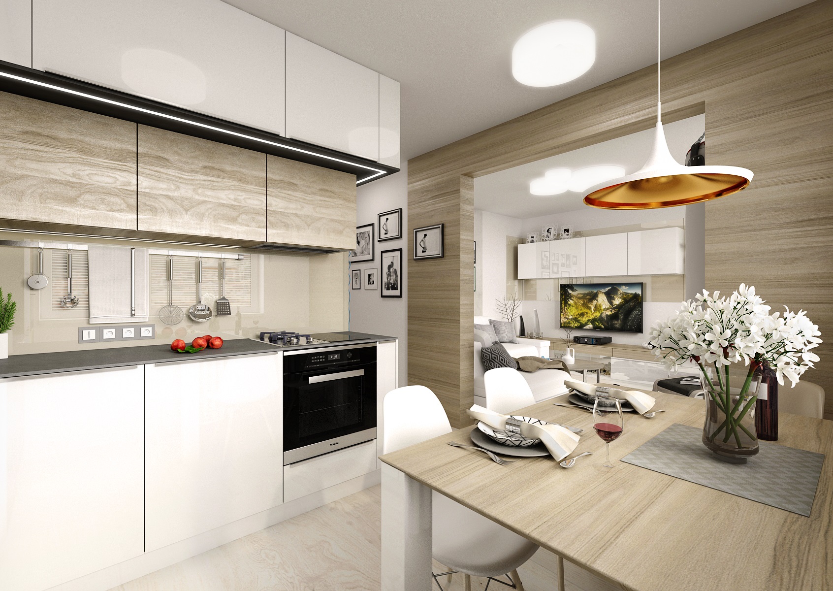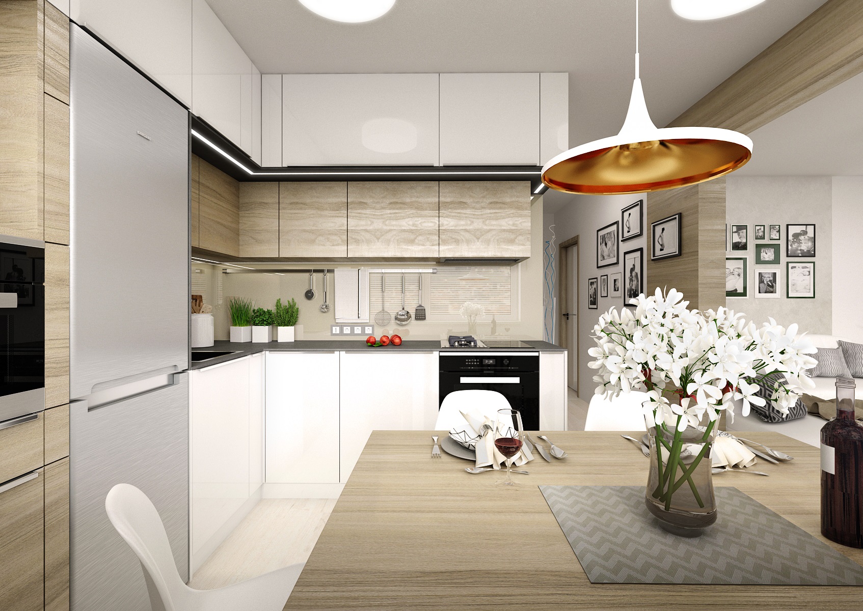 A reconstruction of an apartment building's kitchen, apartment core, partition demolishion to the living room and new children's rooms