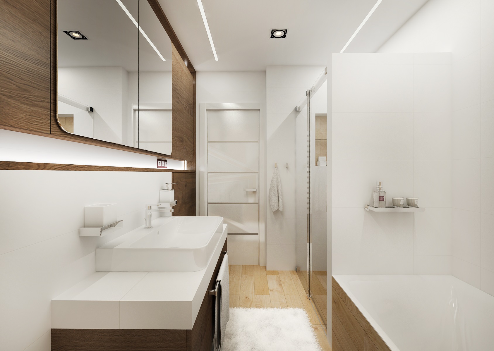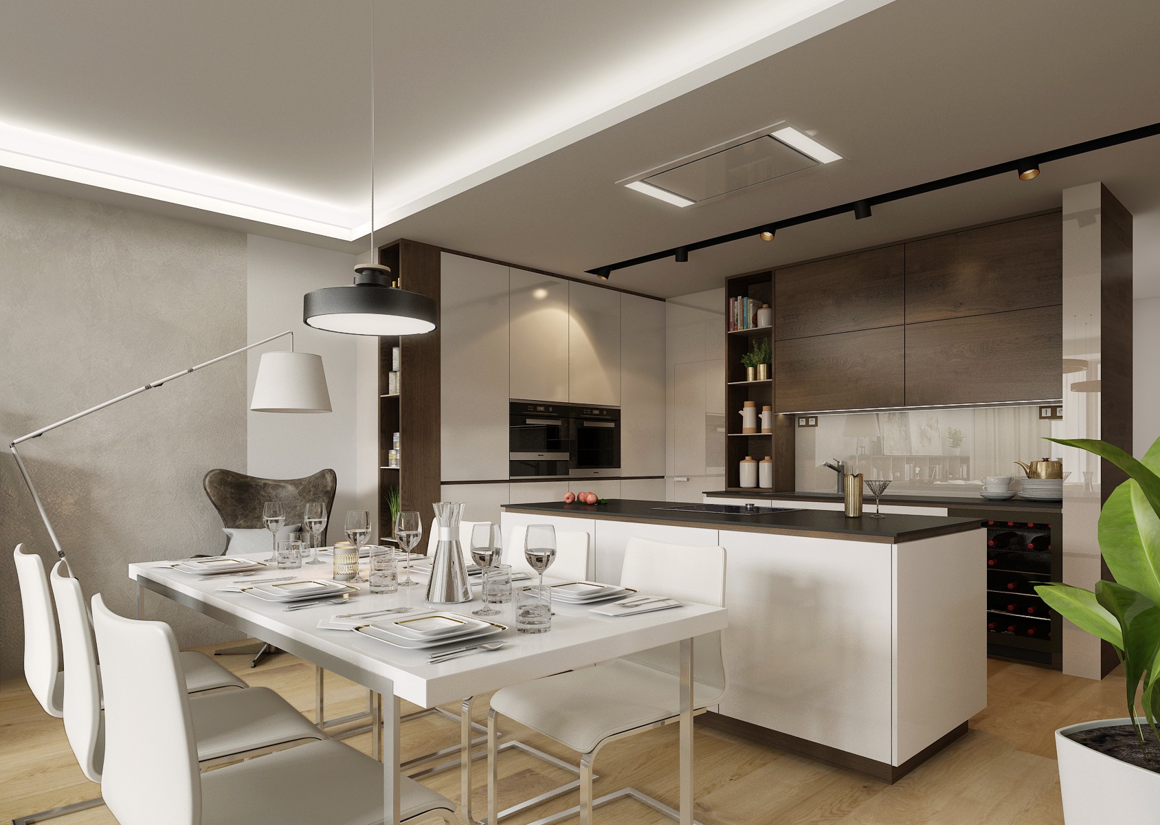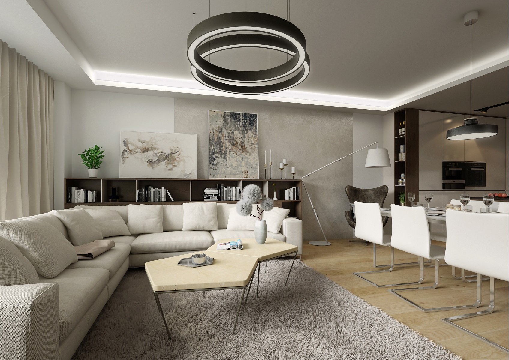 In the centre of Brno we designed a completely furnished luxurious apartment. It includes a home office, which can also serve as a guest room, a dressing room used mostly by the lady of the house. The dominated materials are dark-stained oak veneer, effectively complemented with white lacquered furniture elements, in the kitchen with a creamy accent in the form of Lacobel glass tiles.