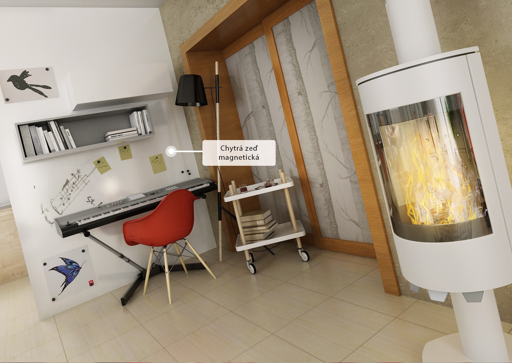 The connection with nature is underlined by the use of wallpaper with a pattern of birch trees.