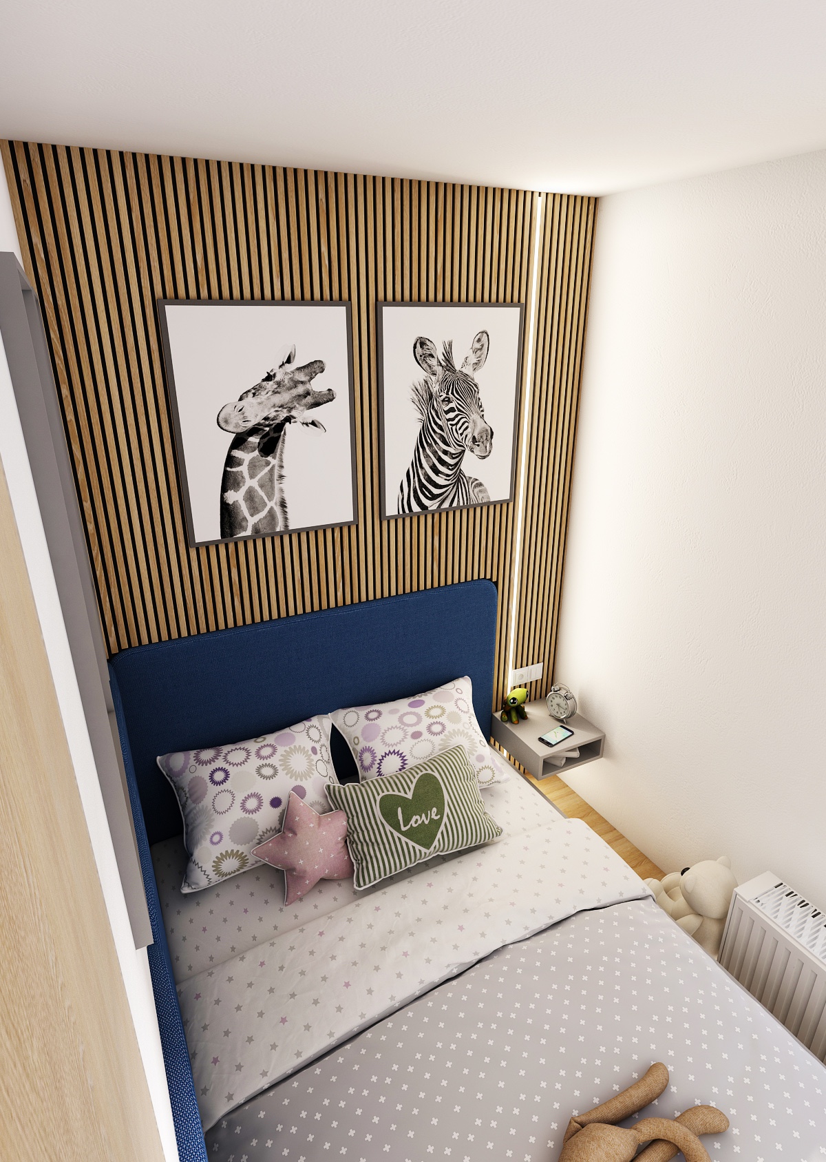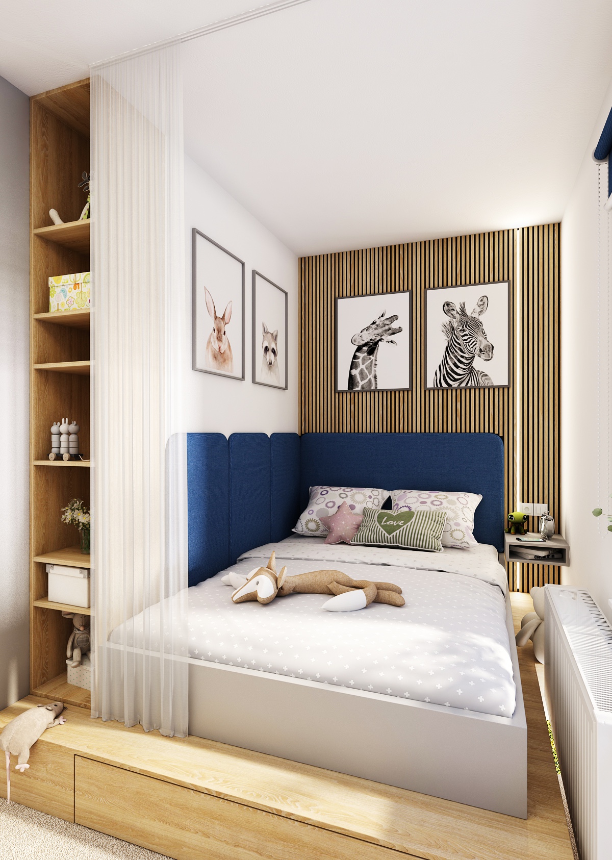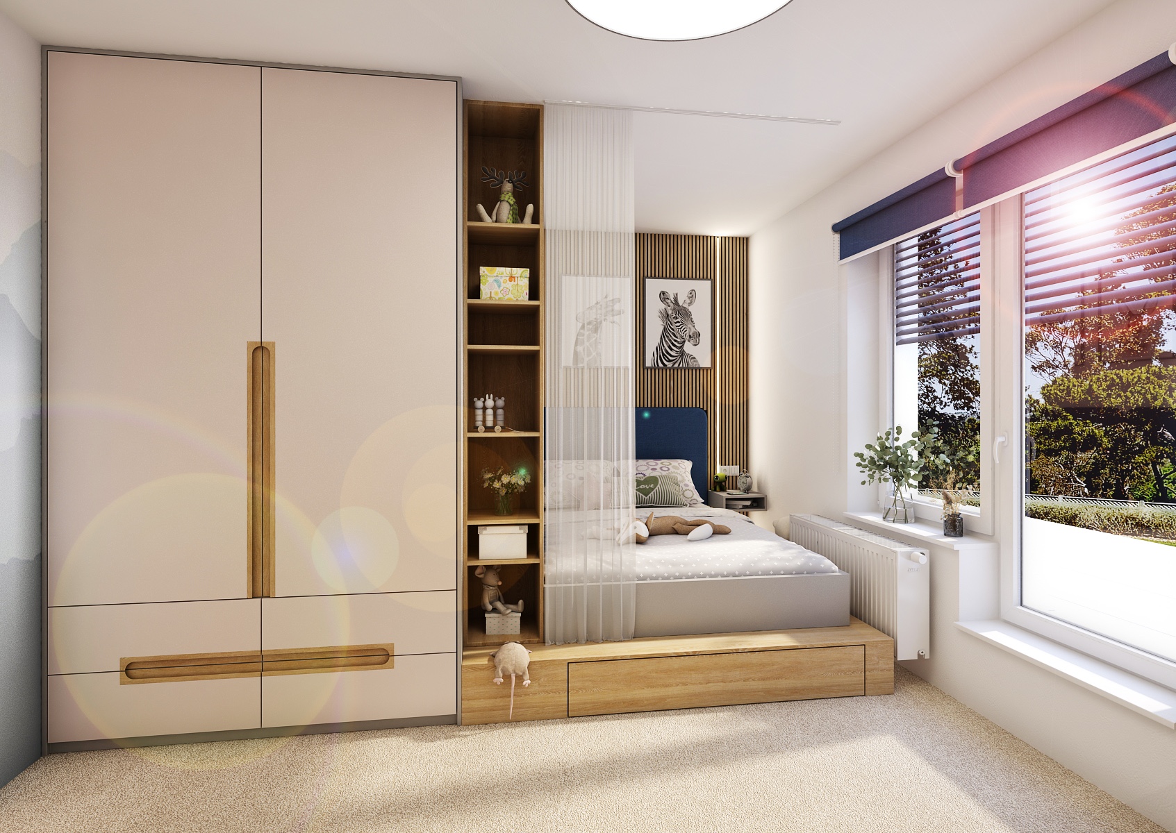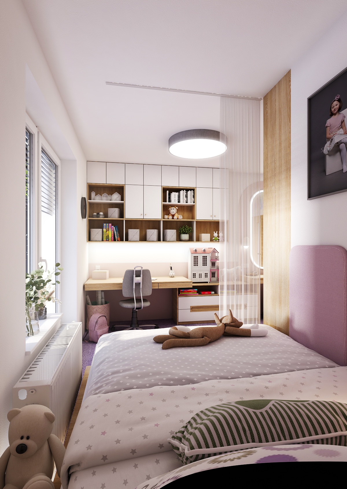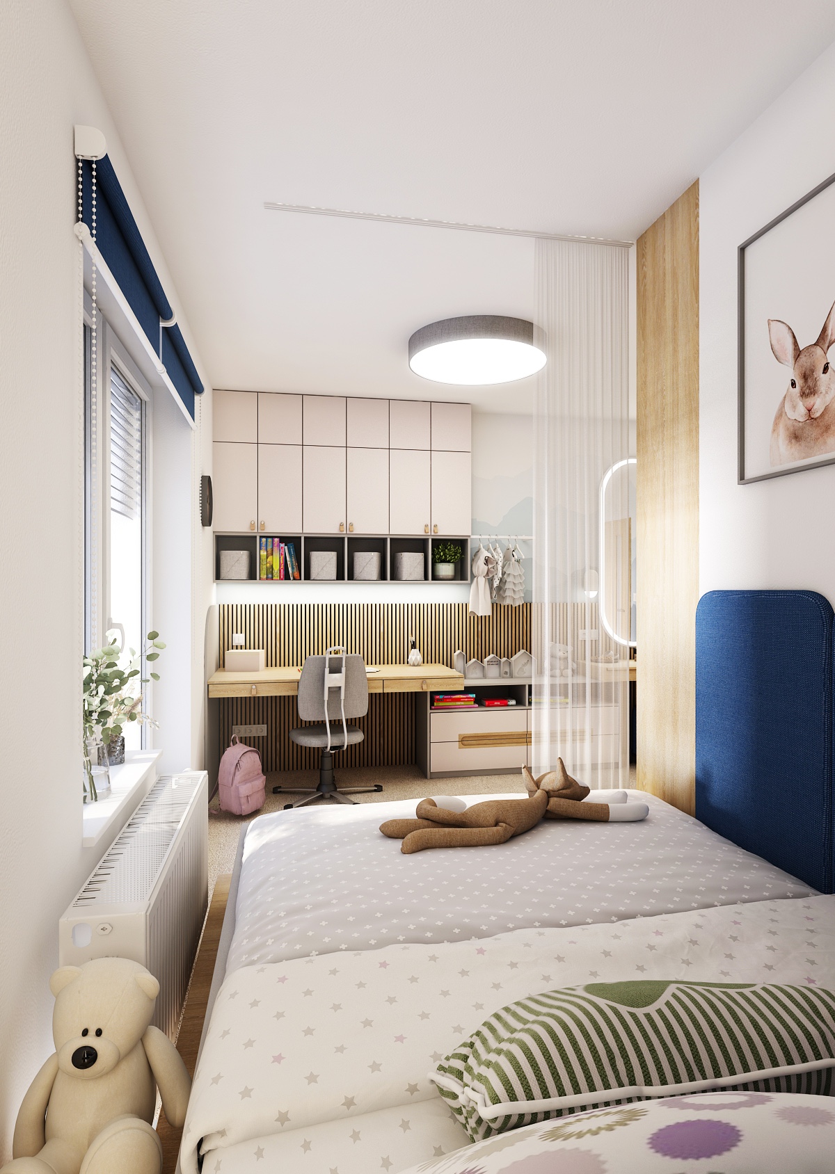 This children's room is designed with functionality and aesthetics in mind, creating a cozy and practical environment for the child.