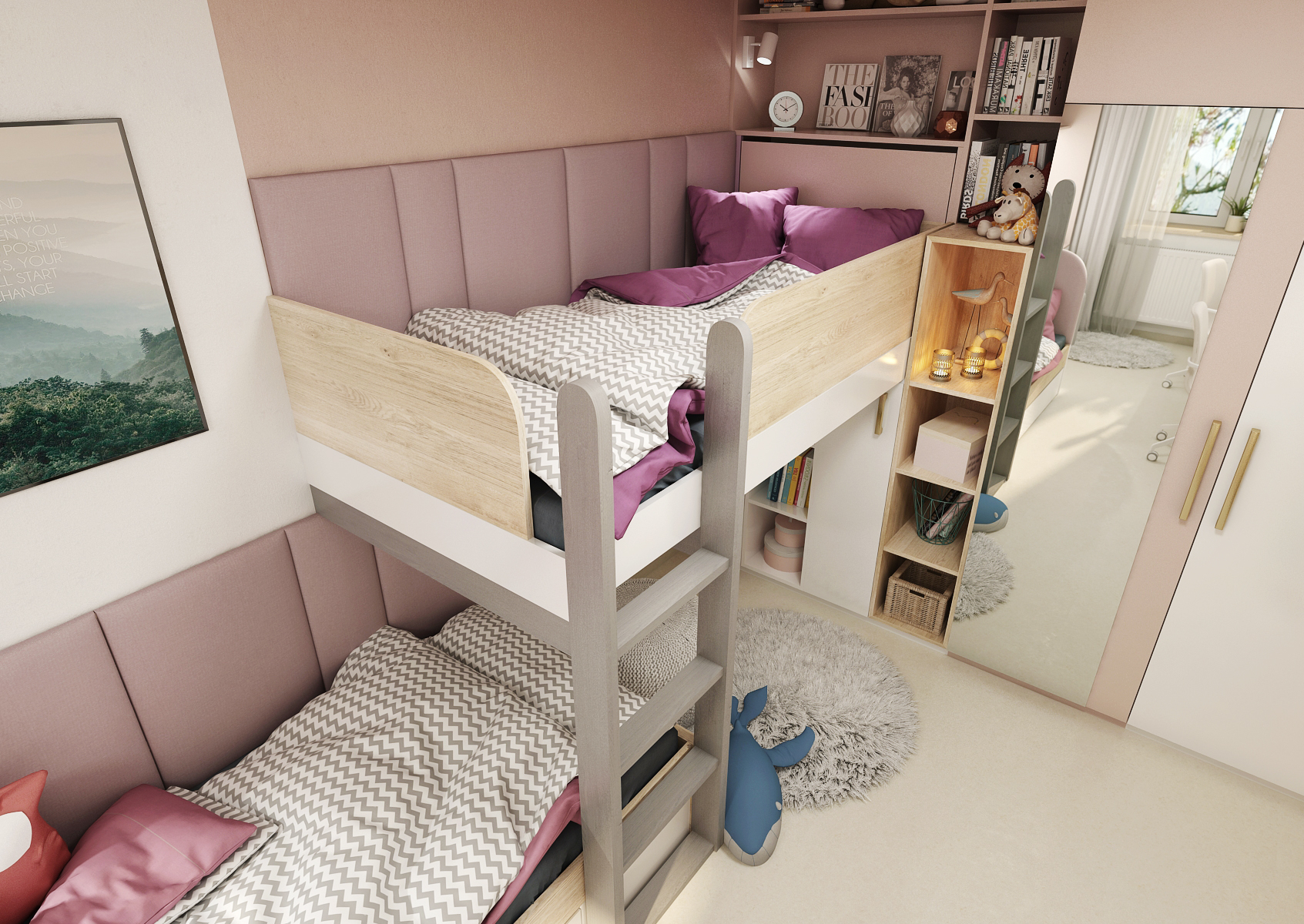 Both versions of children's rooms are equipped with bunk beds for two children. In one case it is for a boy and a girl, in the other for two girls.