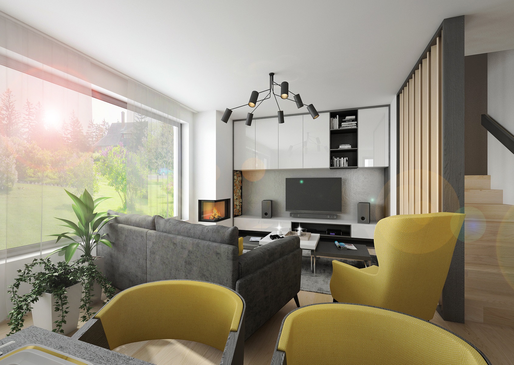 How to optically divide the staircase in the room? For other designs