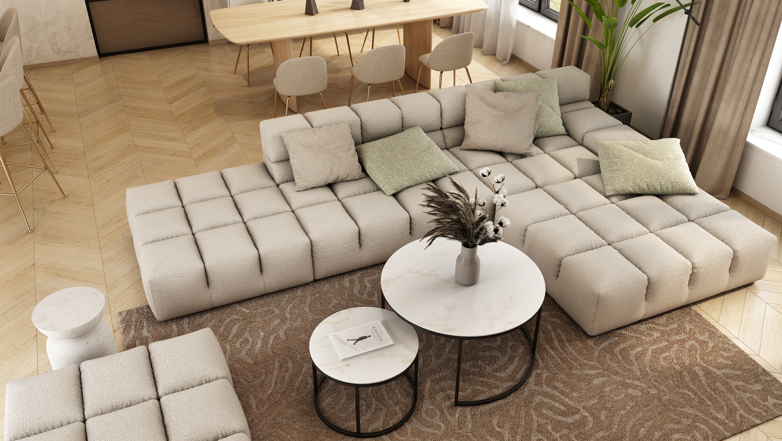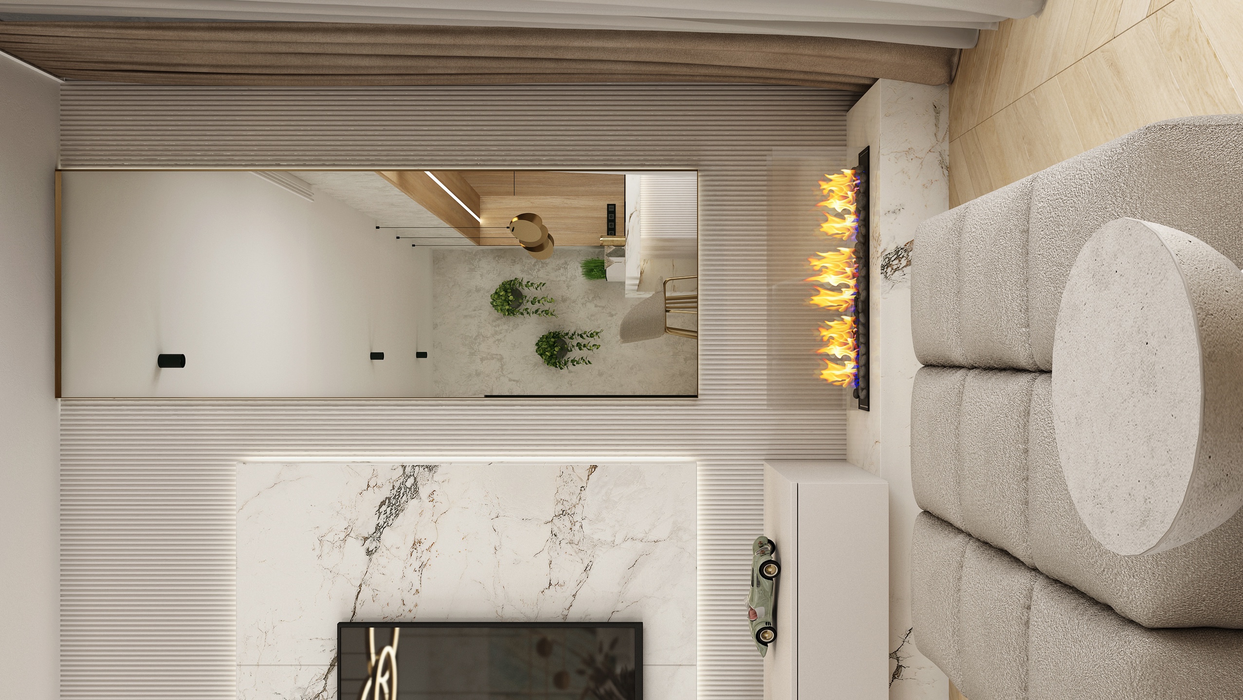 The main living area combines modern minimalism with elegance.
