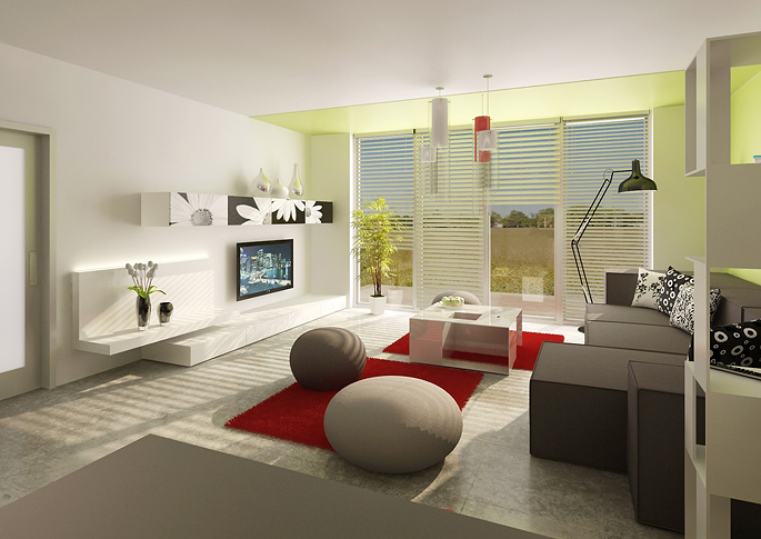 In the part of the interior that is set aside for the living room, fresh colors, decors and motifs are used, which complement each other. Attention was focused mainly on the solution of space for rest and relaxation. Plenty of natural light is provided by large windows overlooking the garden.