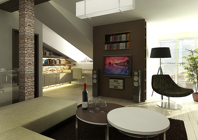 Living room in the attic space